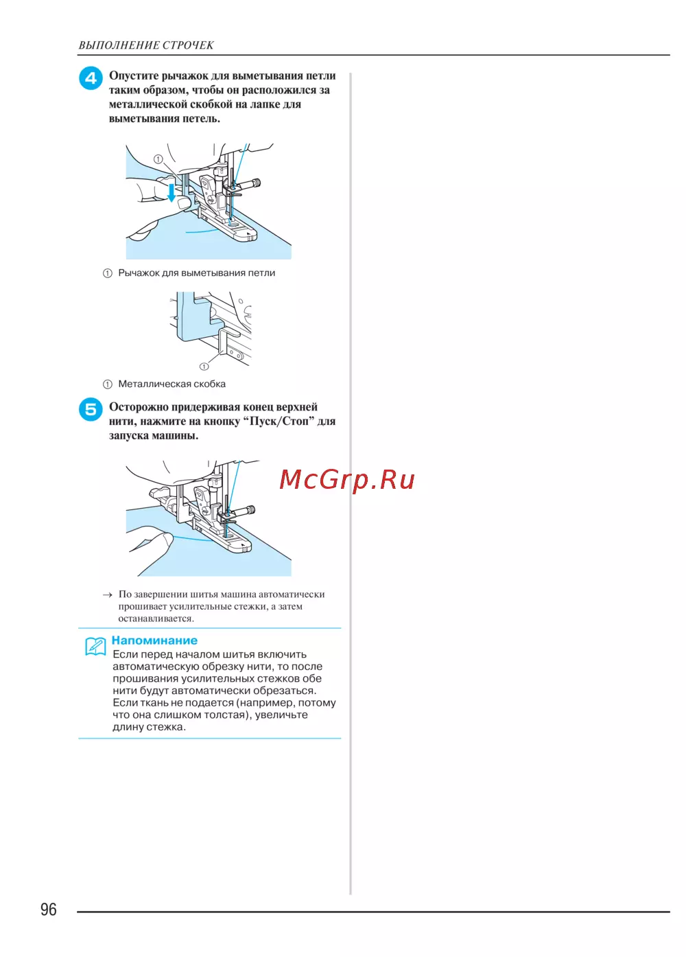 - После того как нити уже обрезаны не нажимайте кнопку обрезки нити это может привести к поломке иглы запутыванию нитей или повреждению машины p.13