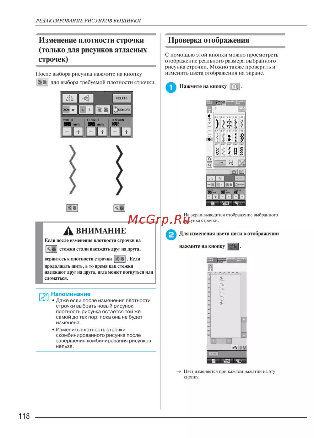 Узнайте, как редактировать рисунки вышивки, изменять плотность строчки и цвета. Получите советы по предотвращению проблем при шитье.