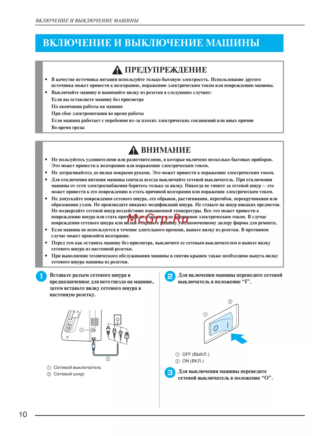 Brother INNOV-IS 4000 — инструкция по включению и выключению машины: безопасность и советы [19/274]