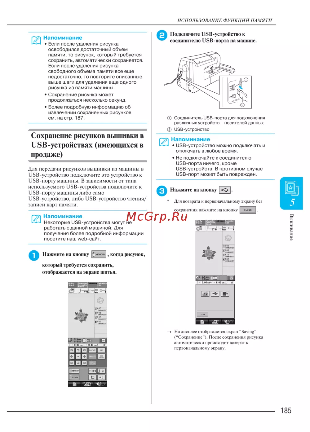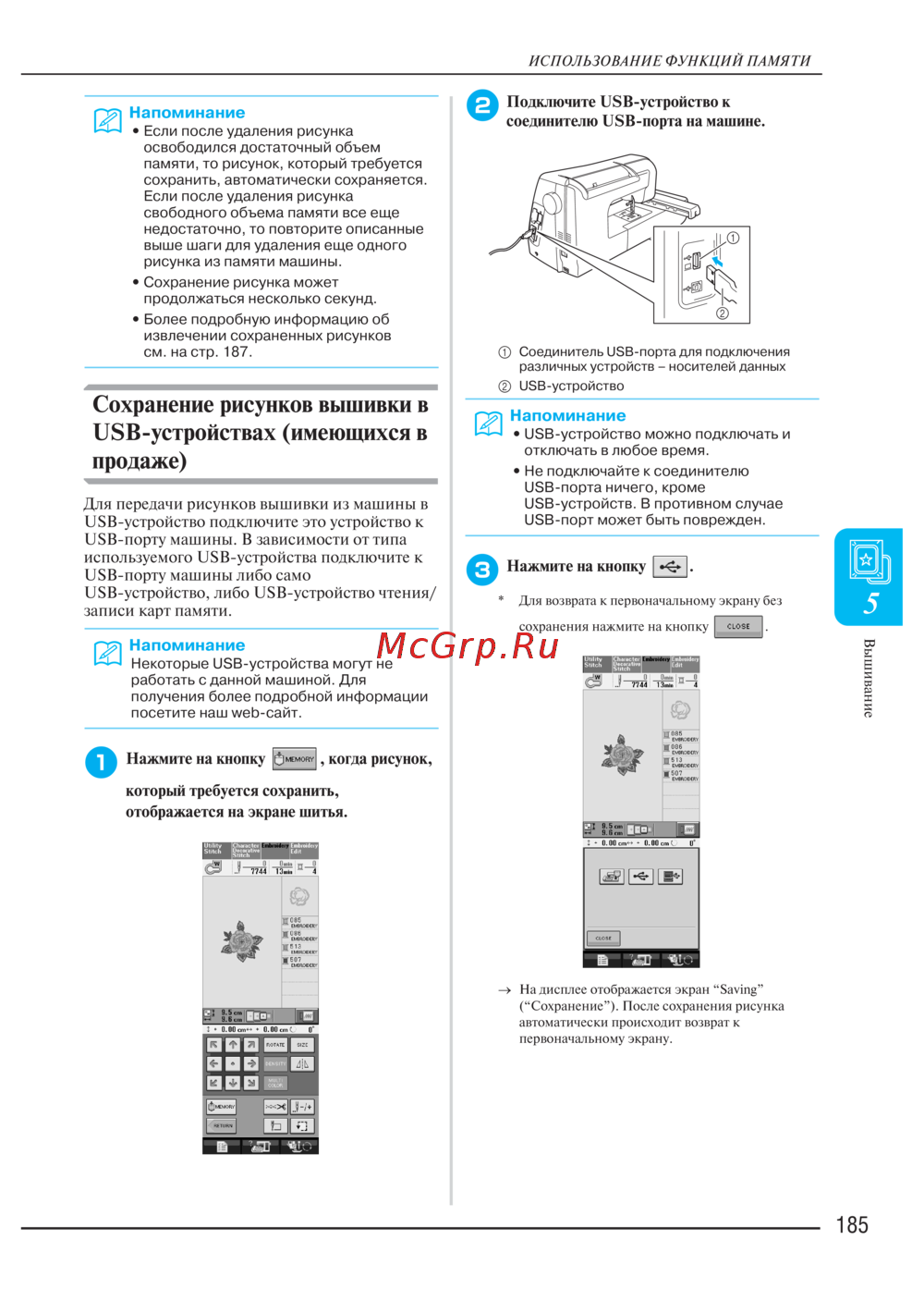 Brother INNOV-IS 4000 — как сохранить рисунки вышивки на USB-устройствах [194/274]