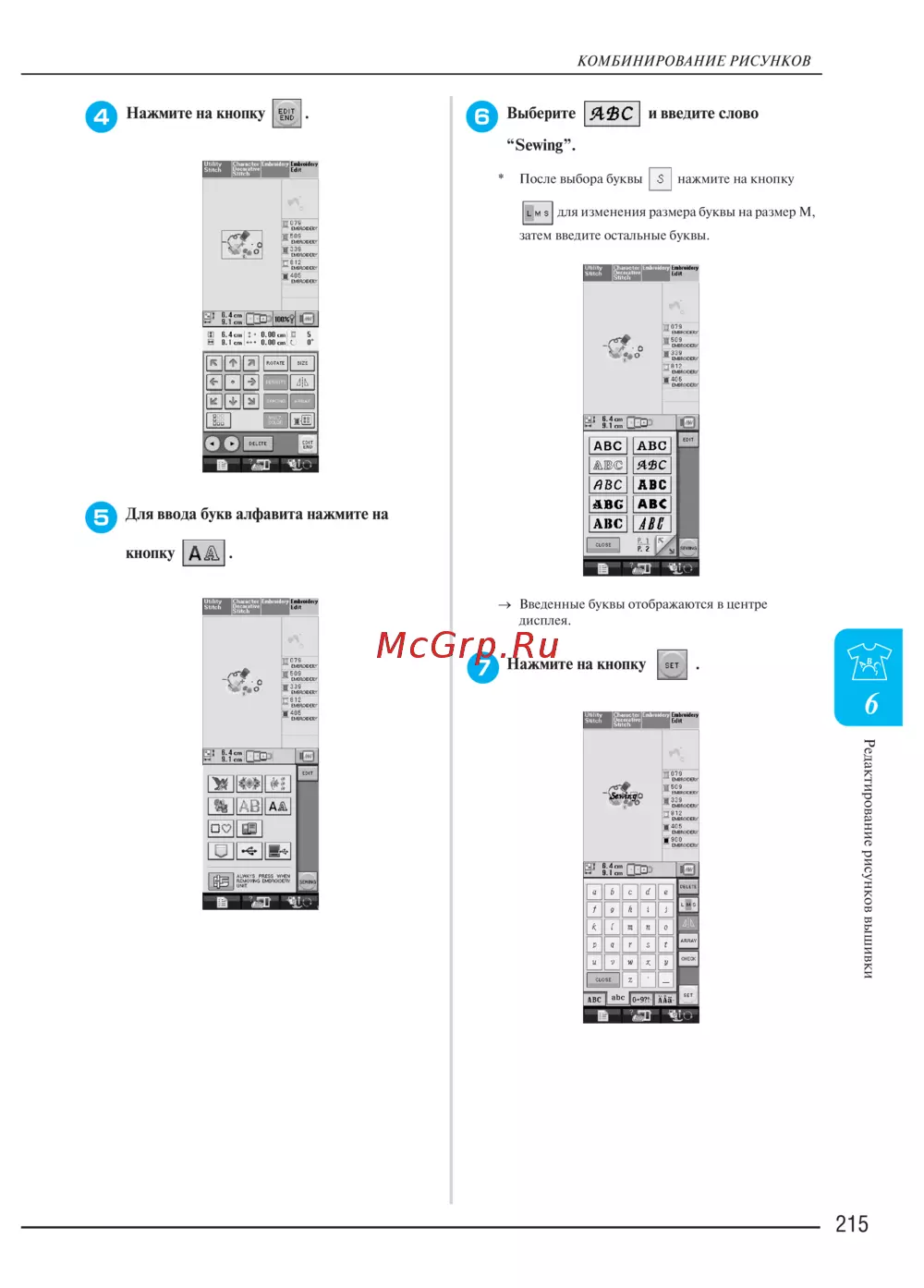 - А затем на кнопку можно во время шитья получить рекомендации по решению незначительных проблем для возврата к первоначальному экрану в любой момент нажмите на p.245