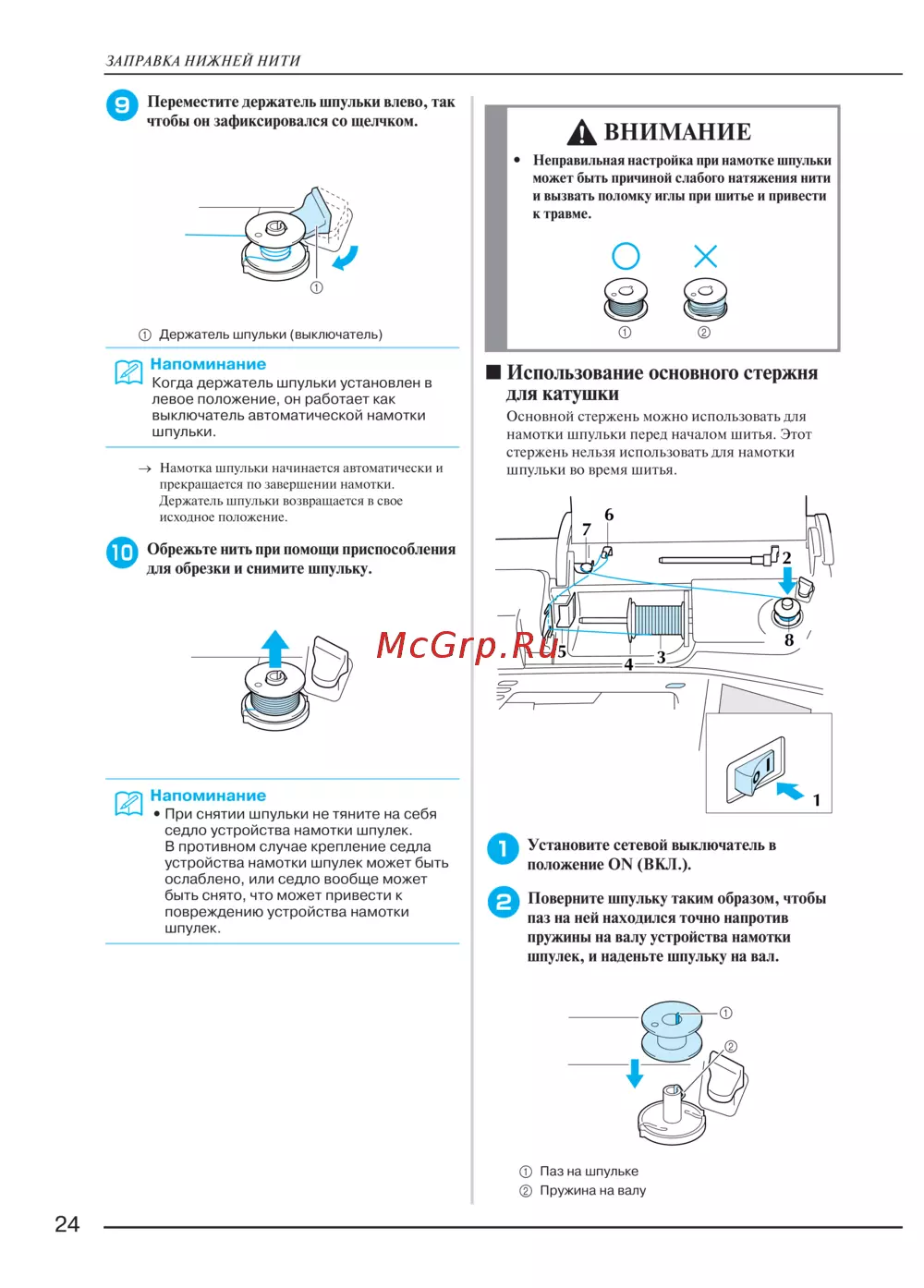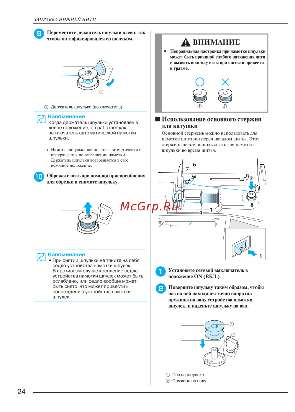 намотки шпульки перед началом шитья. Этот