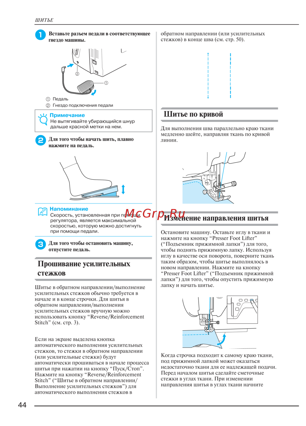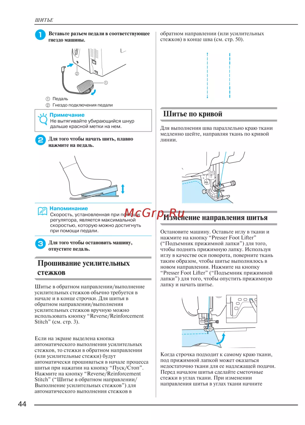 Узнайте, как правильно использовать швейную машину, управлять педалью и выполнять усилительные стежки. Полезные советы для начинающих швей.