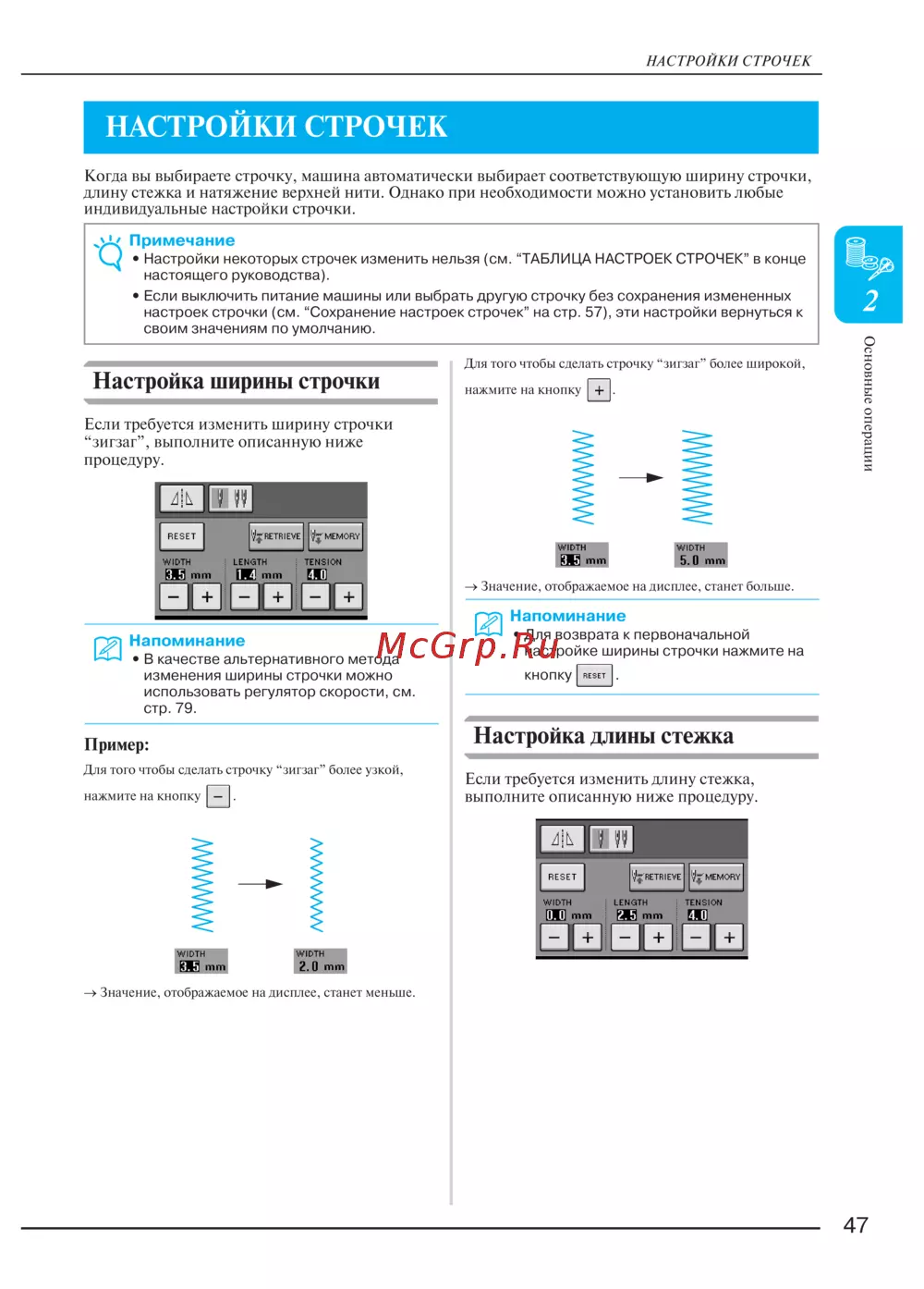 Brother INNOV-IS 4000 — настройки строчек: изменение ширины и длины стежка [56/274]