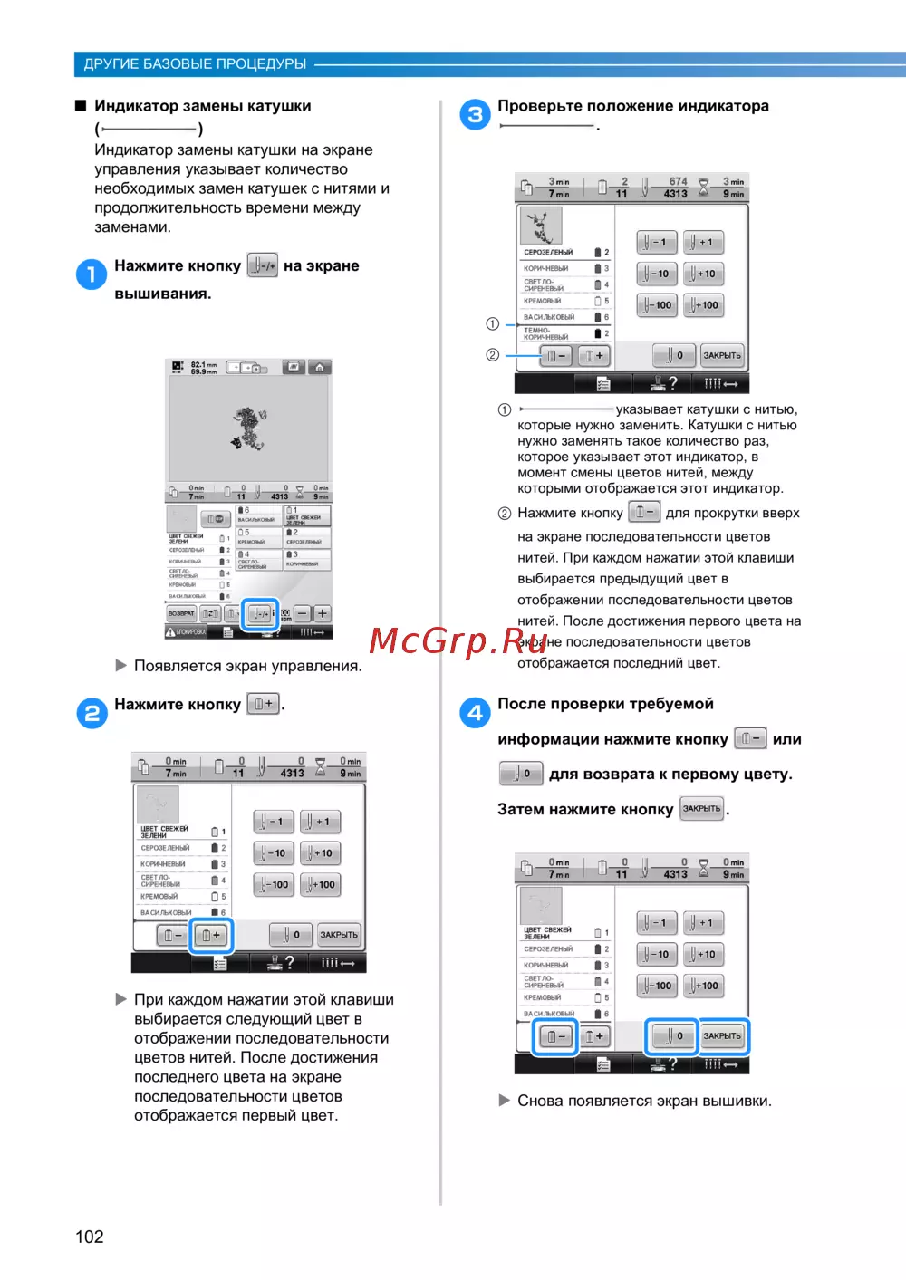 Узнайте, как правильно использовать индикатор замены катушек с нитями на экране управления. Подробные шаги для замены и проверки цветов нитей.
