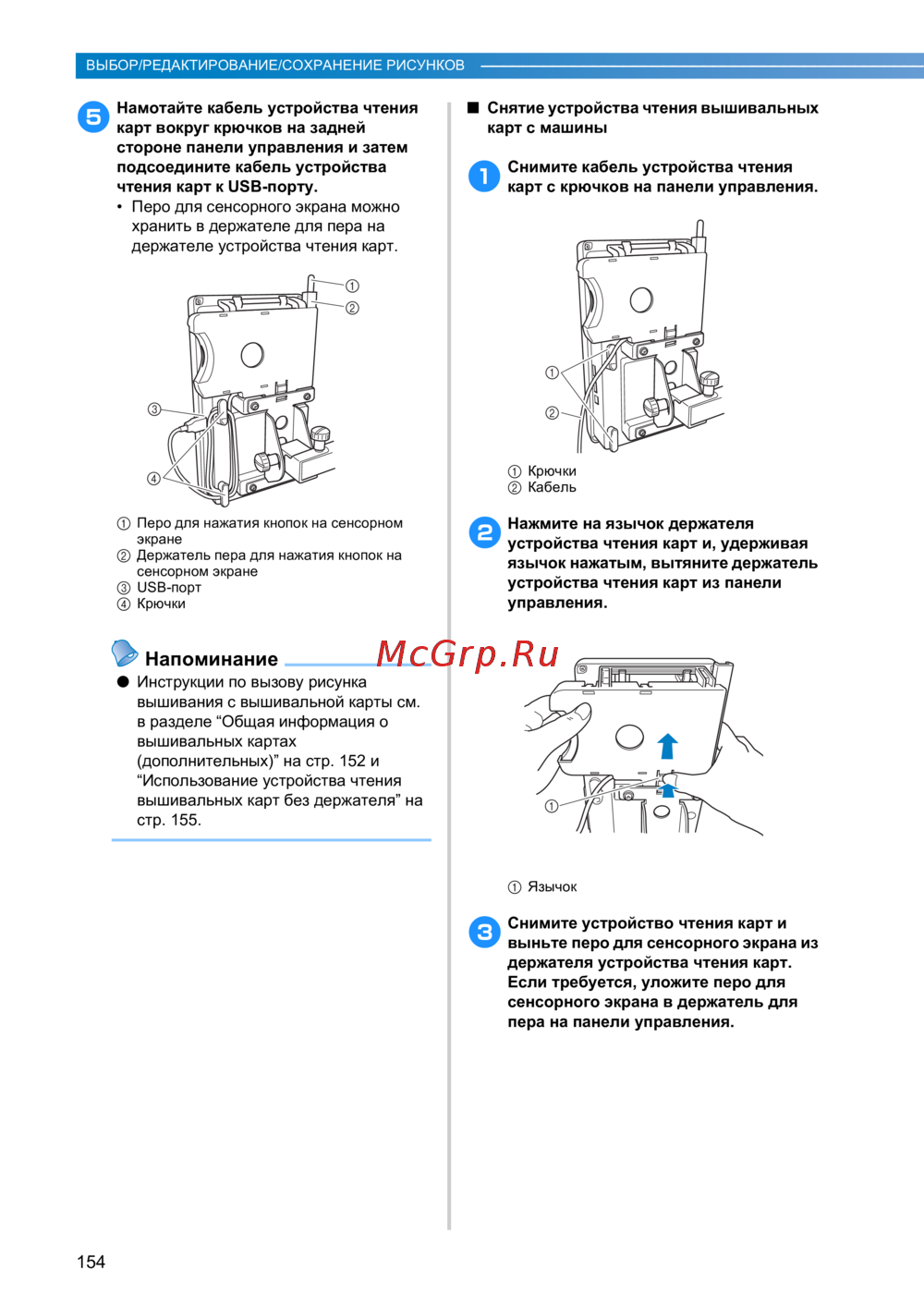 Brother PR650e — инструкции по использованию устройства чтения карт и пера [156/280]