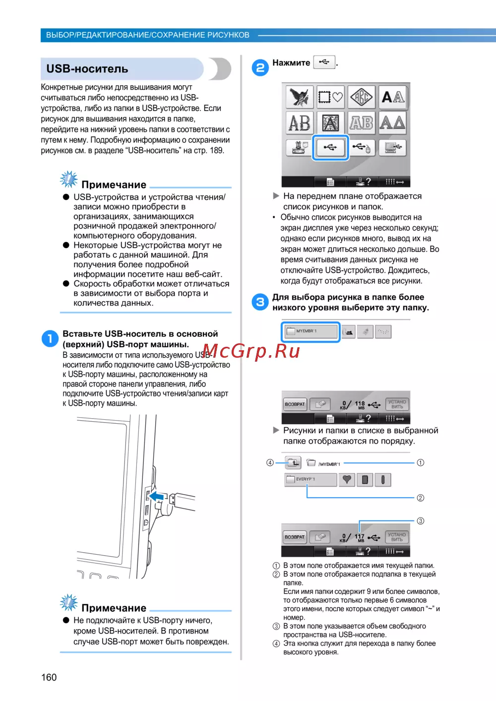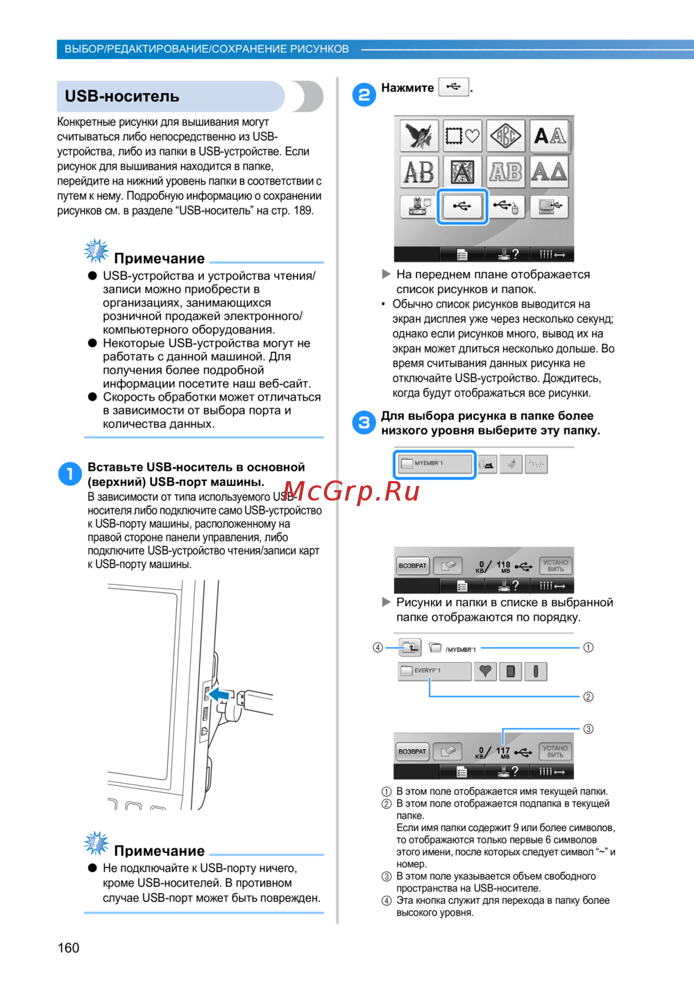 Brother PR650e — как выбрать и редактировать рисунки для вышивания с USB-носителя [162/280]