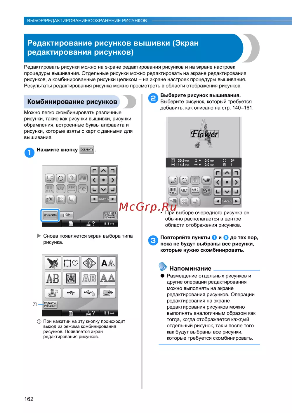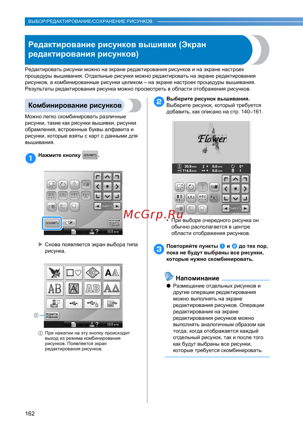 Узнайте, как редактировать и комбинировать рисунки для вышивки. Легко управляйте отдельными и комбинированными рисунками на экране редактирования.