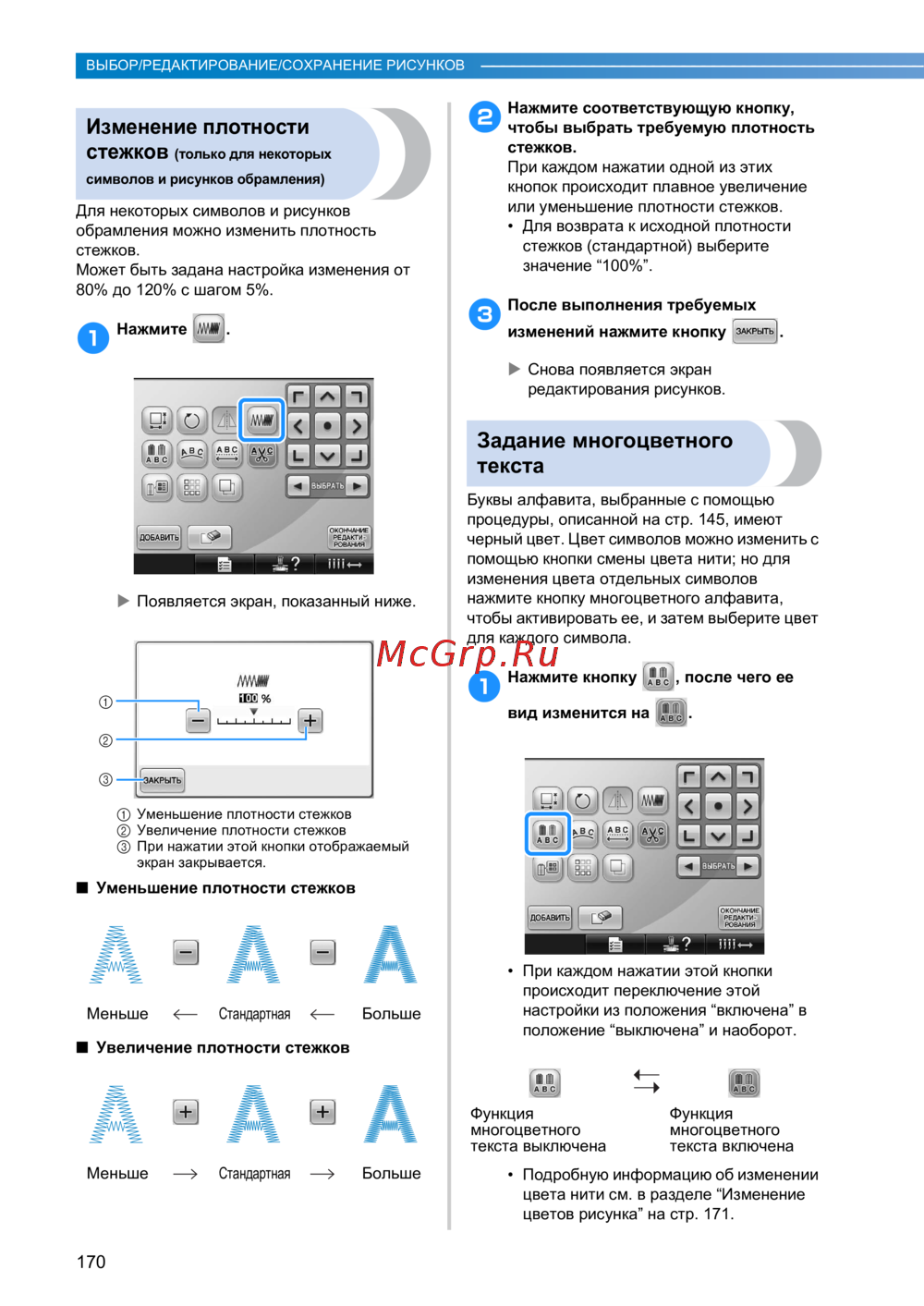 Brother PR650e — как изменить плотность стежков и цвет символов в рисунках [172/280]