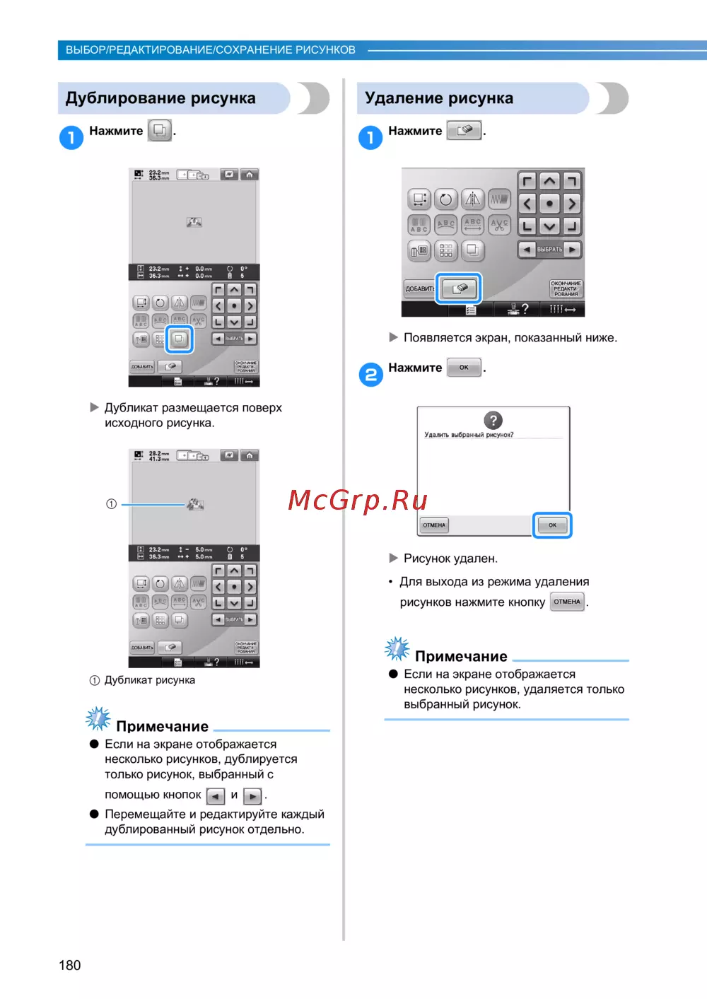 Brother PR650e — как дублировать и удалять рисунки в графическом редакторе [182/280]