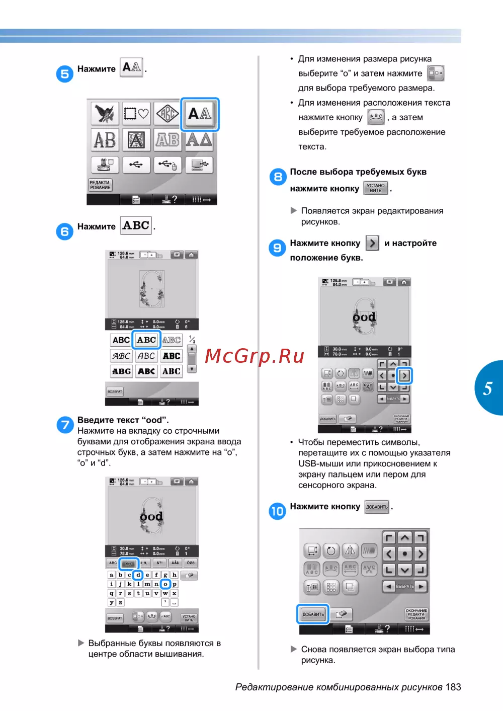 Brother PR650e — редактирование комбинированных рисунков: пошаговое руководство [185/280]