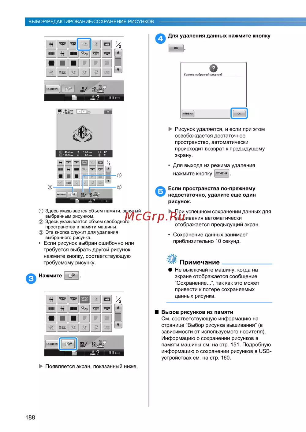 Brother PR650e — как выбрать, редактировать и сохранять рисунки на устройстве [190/280]