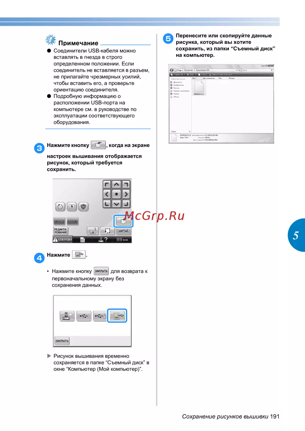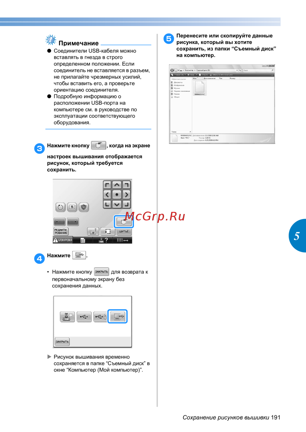 Brother PR650e — как сохранить рисунки вышивки на компьютере: пошаговая инструкция [193/280]