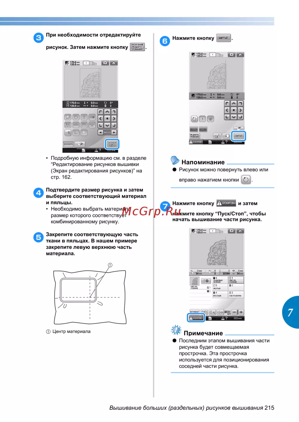 Brother PR650e — инструкция по вышиванию больших рисунков: шаги и советы [217/280]