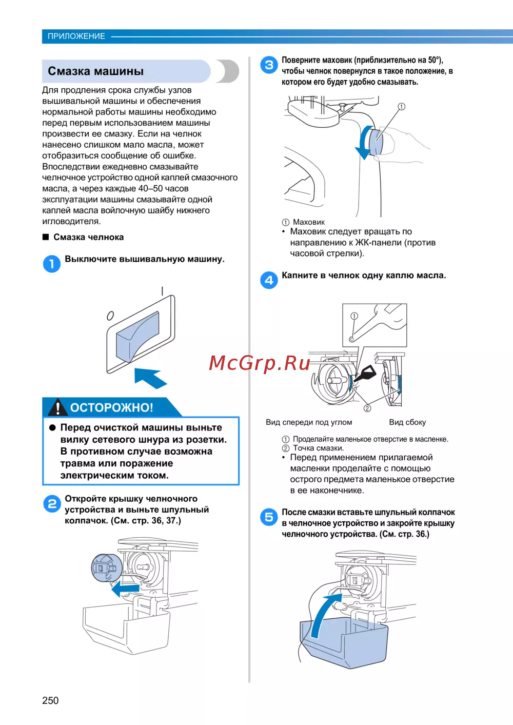 Brother PR650e — инструкция по смазке вышивальной машины для долговечности [252/280]