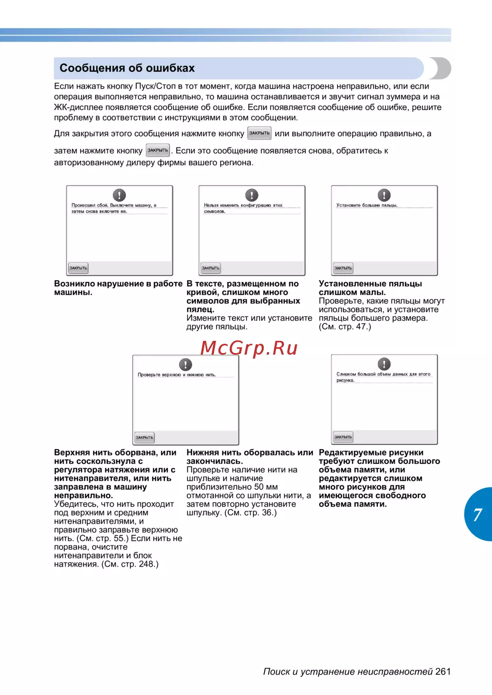 Brother PR650e — поиск и устранение неисправностей: советы и рекомендации [263/280]