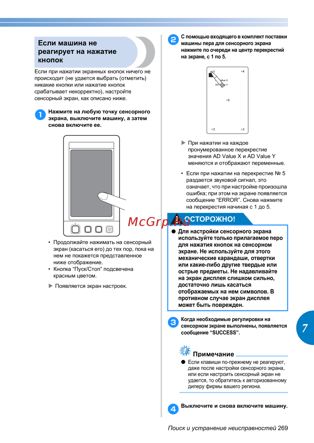 Brother PR650e — инструкция по настройке сенсорного экрана для устранения неисправностей [271/280]
