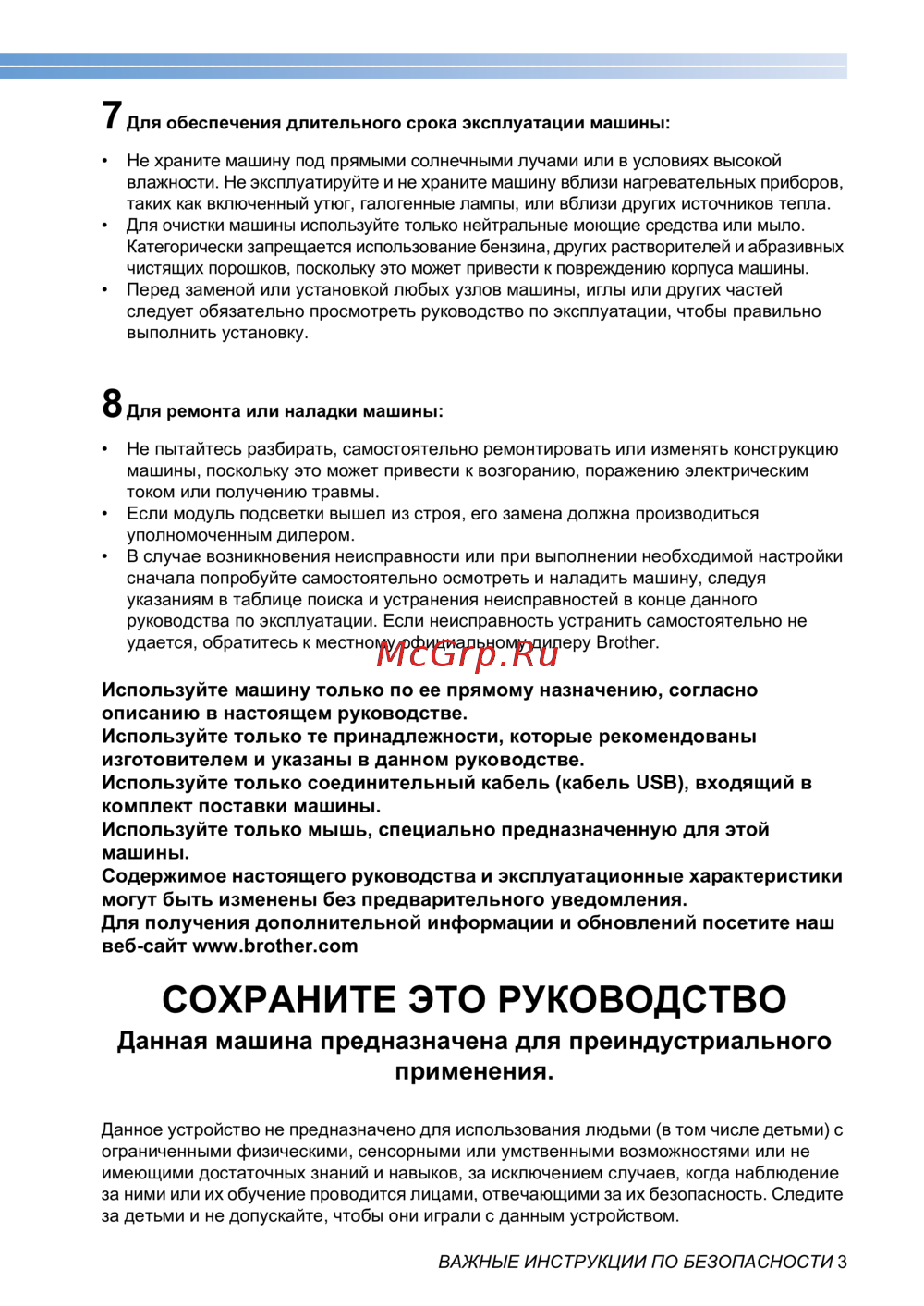 Brother PR650e — инструкции по безопасности и эксплуатации устройства [5/280]