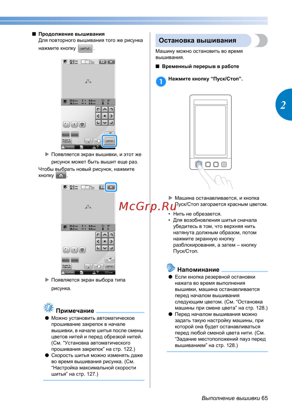 прошивания закрепок” на стр. 122.)