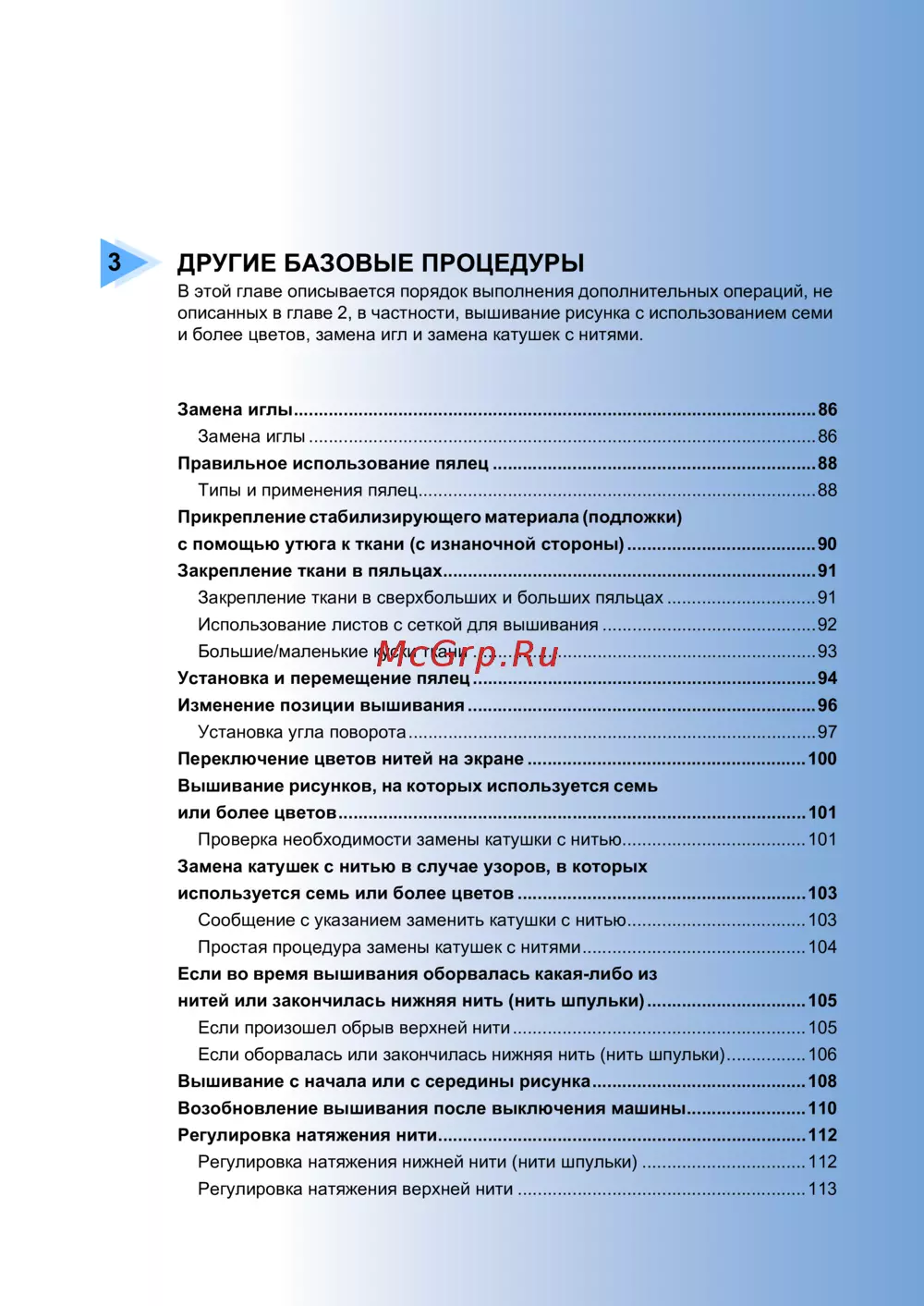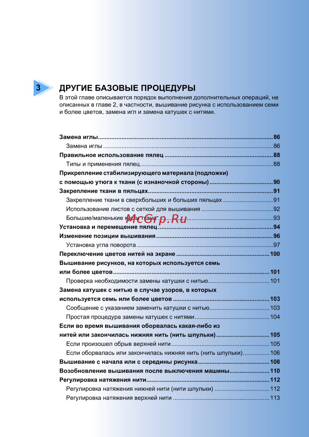 Замена иглы.........................................................................................................86
