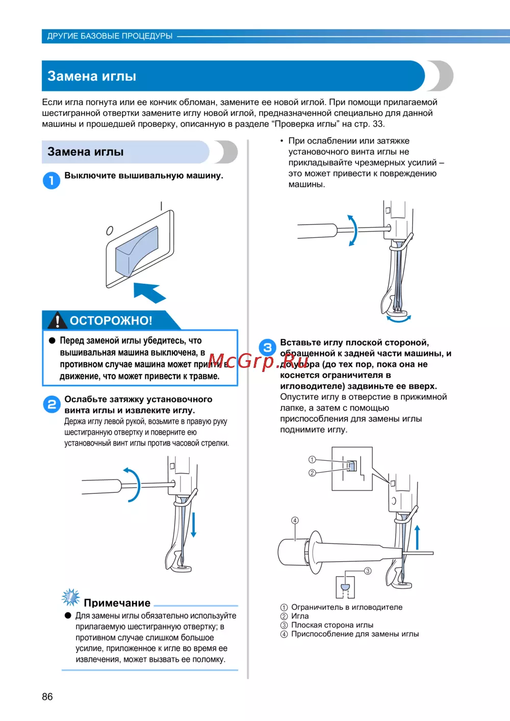 Для замены иглы обязательно используйте