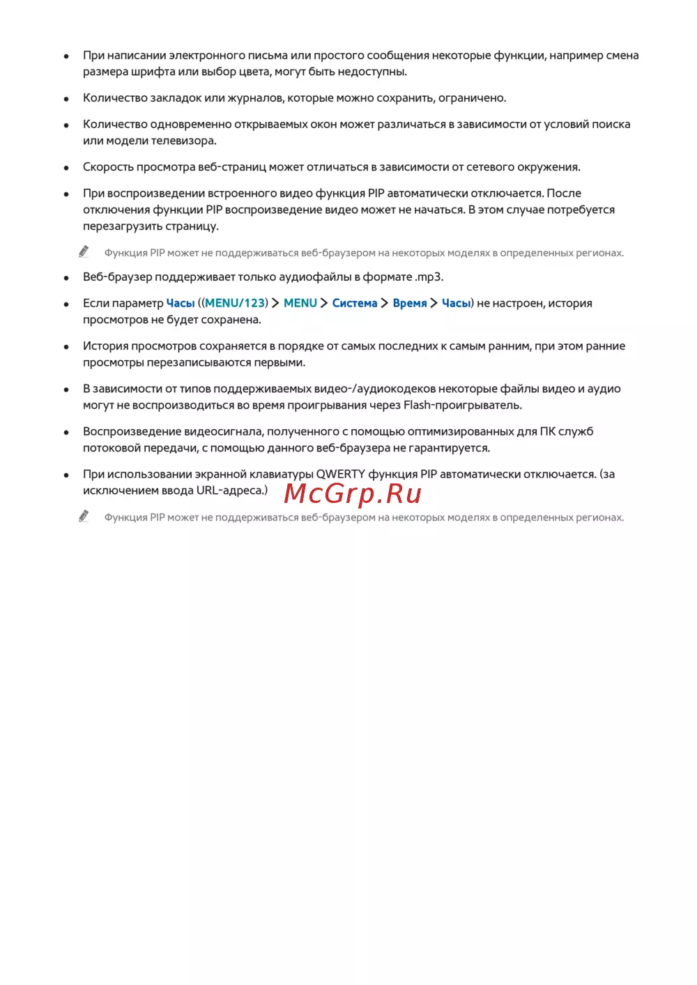 Samsung UE48JU6000U — ограничения и функции веб-браузера для просмотра контента [178/194]
