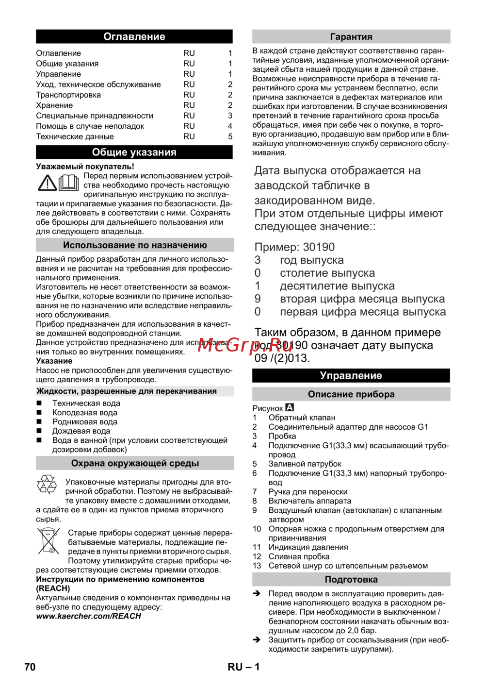 Karcher bp 3 home [70/155] 30190 3 0 1 9 0