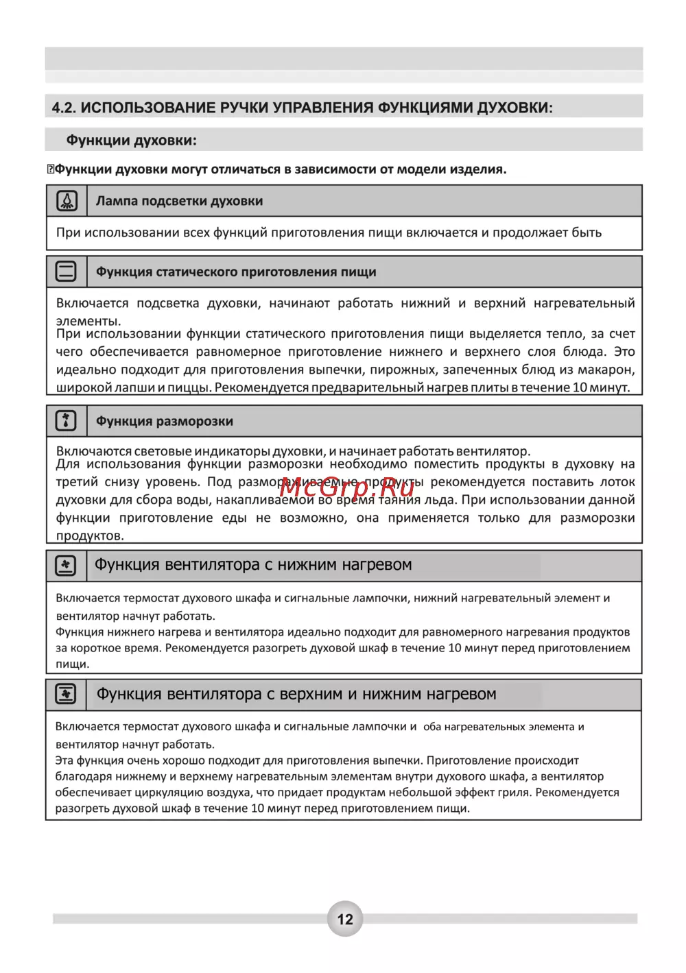 - Функция вентилятора с нижним нагревом p.14