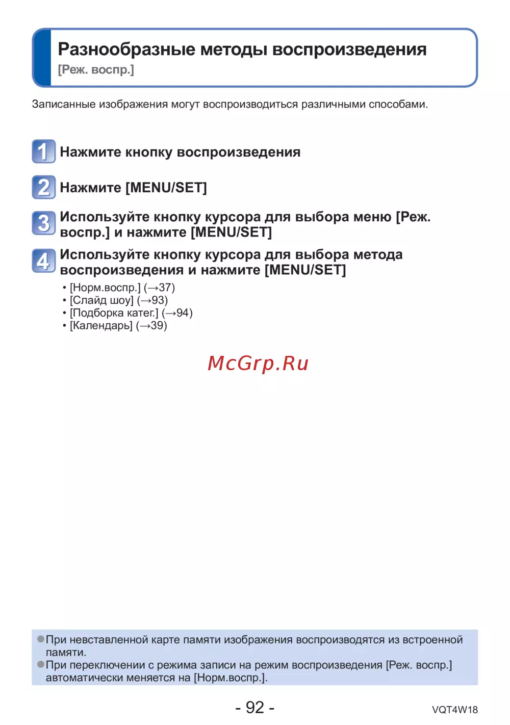 При невставленной карте памяти изображения воспроизводятся из встроенной