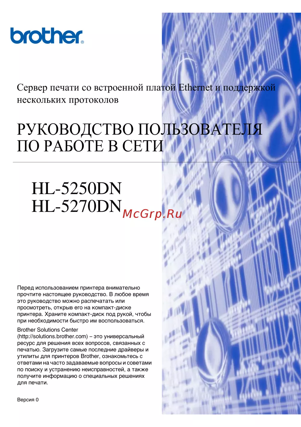 - Настройка принтера в сети с помощью панели управления для hl 5270dn p.17