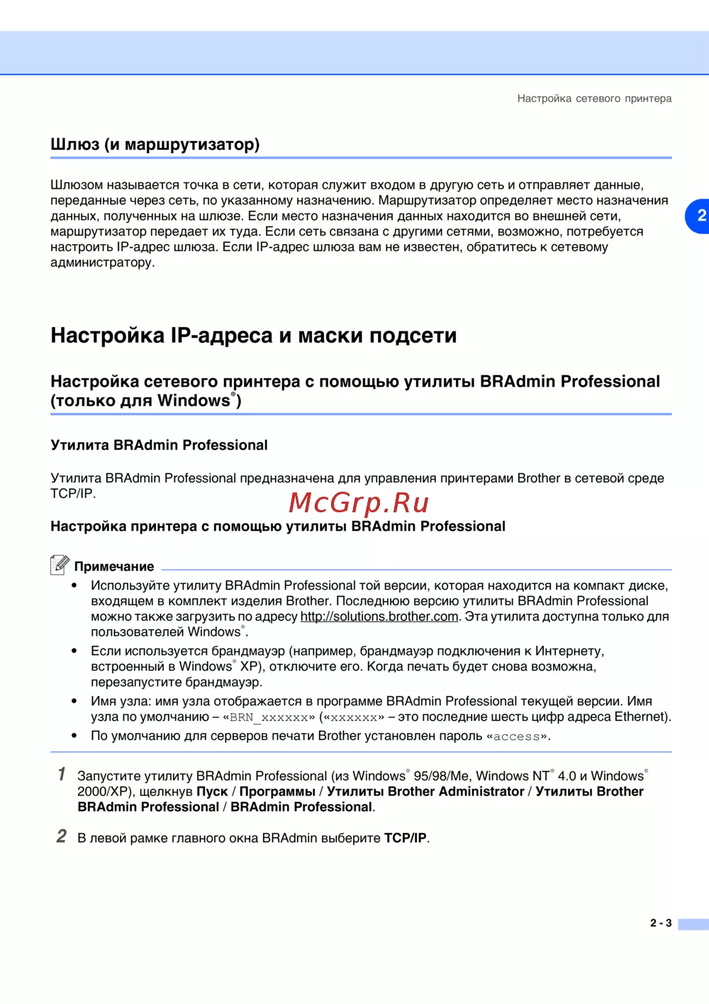 - Настройка сетевого принтера с помощью утилиты bradmin professional только для window p.16