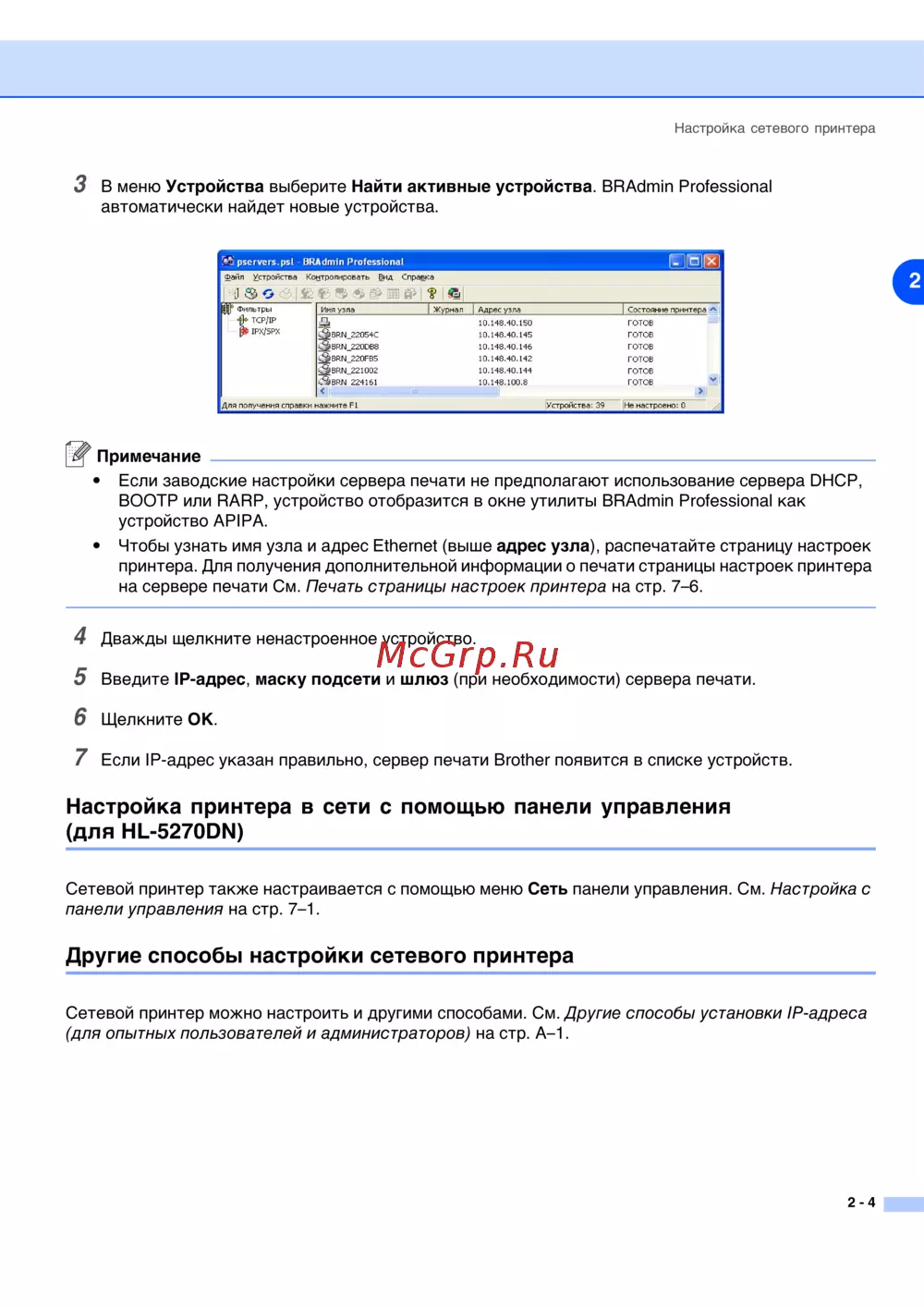 - Настройка сетевого принтера с помощью утилиты bradmin professional только для window p.16