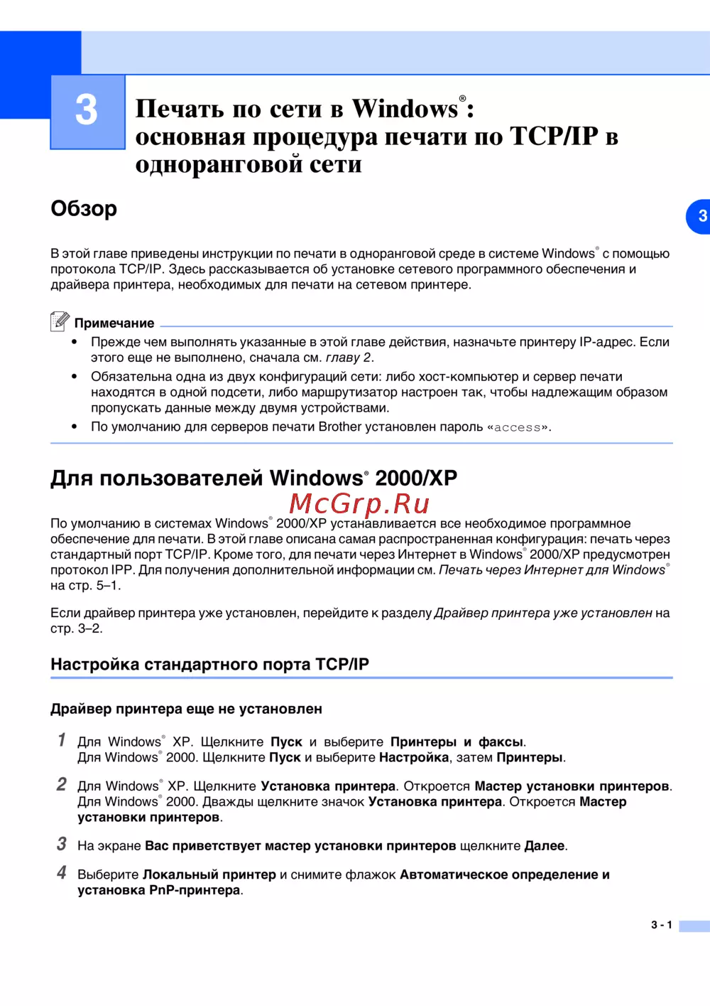 - Печать в одноранговой сети с помощью tcp ip p.10