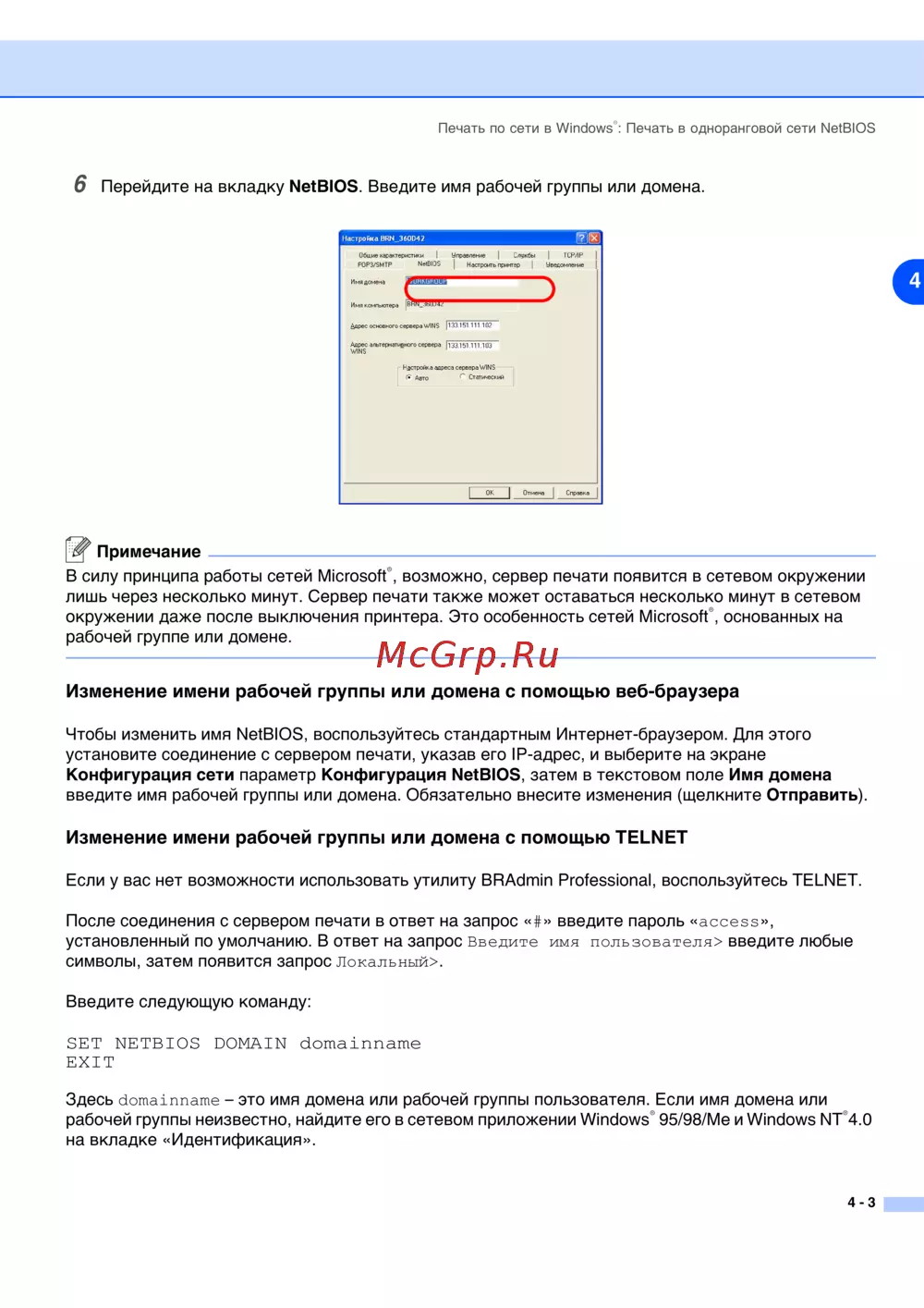 - Устранение неисправностей печати в одноранговой сети netbios window p.55