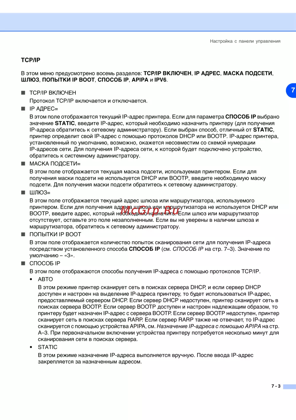 - Перед использованием принтера brother в сетевой среде настройте параметры tcp ip для получения дополнительной информации см изменение настроек сервера печати на стр 2 5 p.42