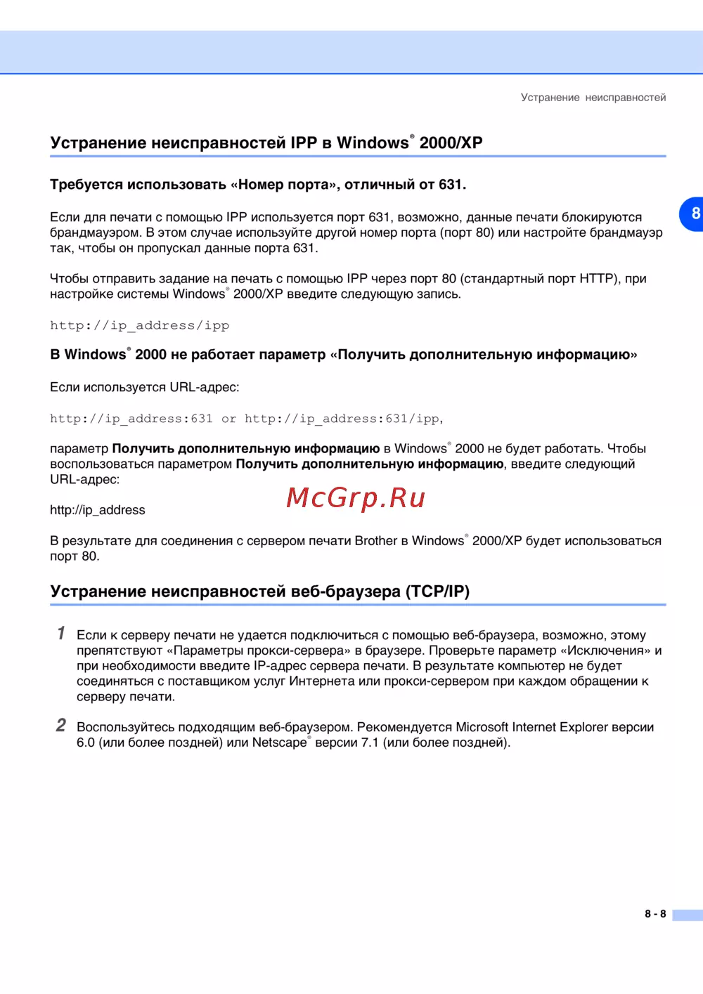 - Устранение неисправностей ipp в windows 2000 xp p.56