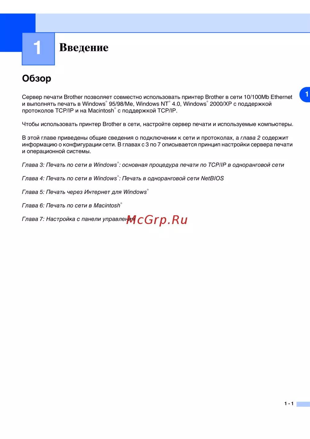 информацию о конфигурации сети. В главах с 3 по 7 описывается принцип настройки сервера печати