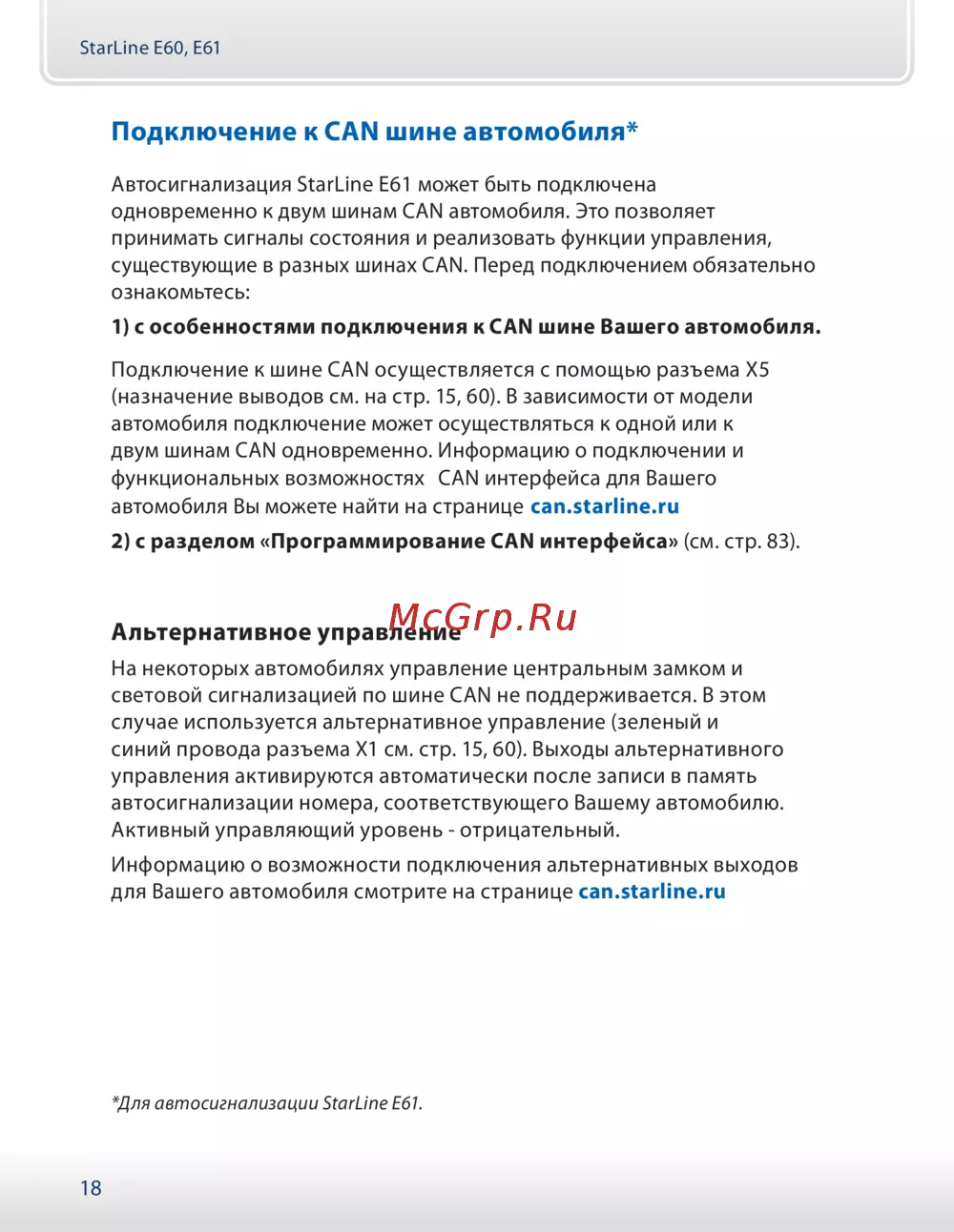 Starline E61 [18/126] Подключение к can шине автомобиля