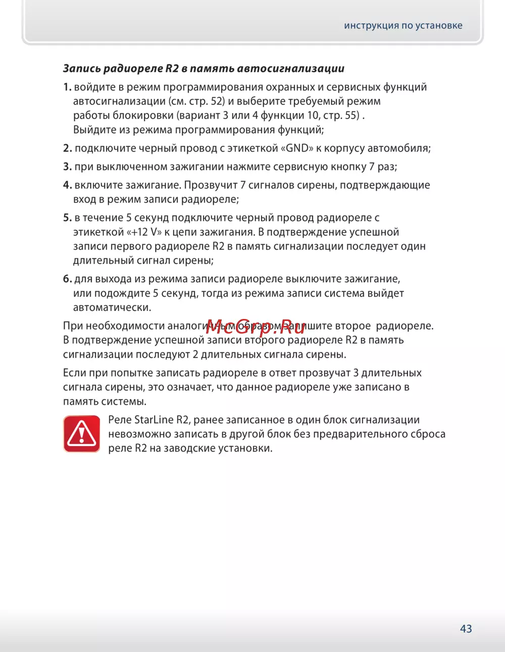 Starline E61 — инструкция по установке радиореле в автосигнализацию [43/126]