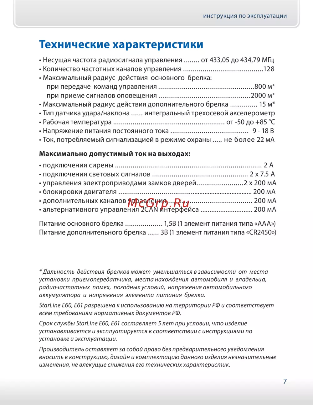 Срок службы StarLine Е60, E61 составляет 5 лет при условии, что изделие