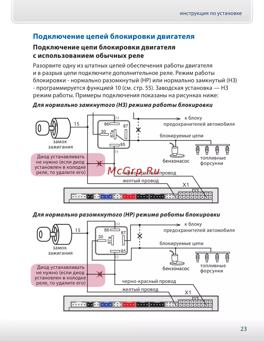 - Подключение цепи блокировки двигателя с использованием обычных реле p.23
