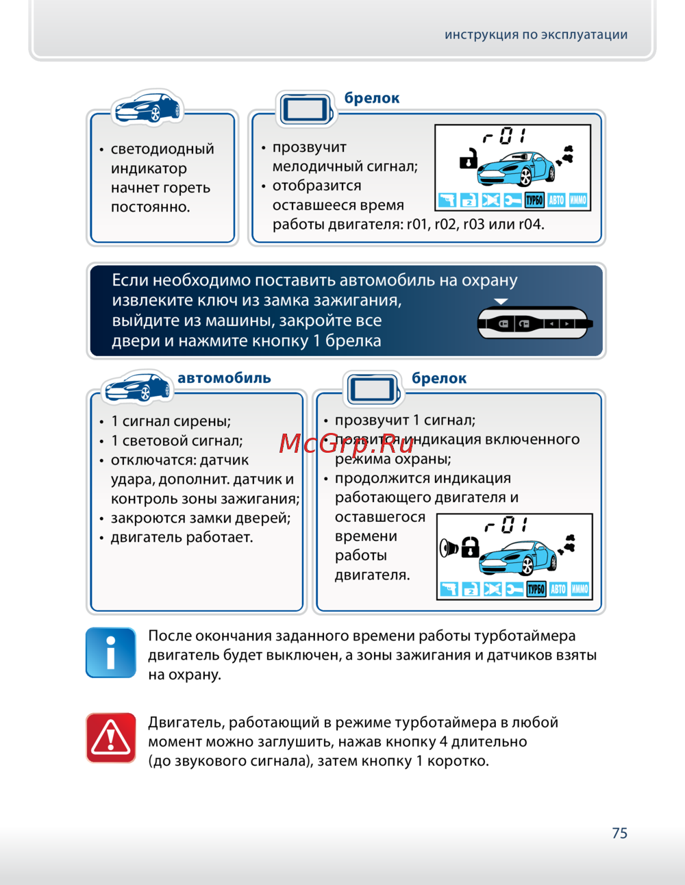 - Для включения выбранного режима нажмите на брелке кнопку 1 p.28