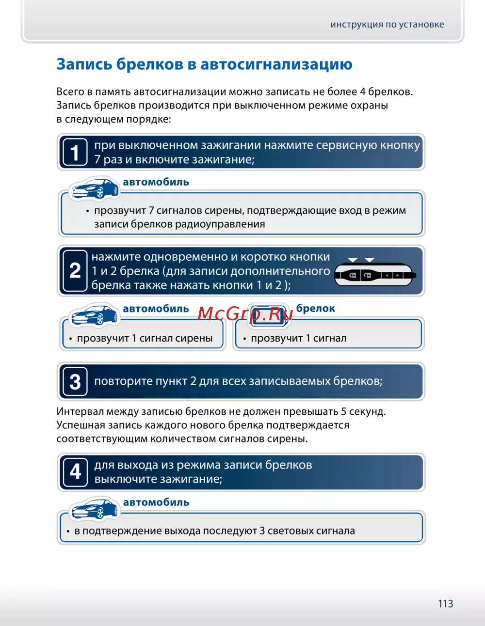 - Повторите пункт 2 для всех записываемых брелков p.113