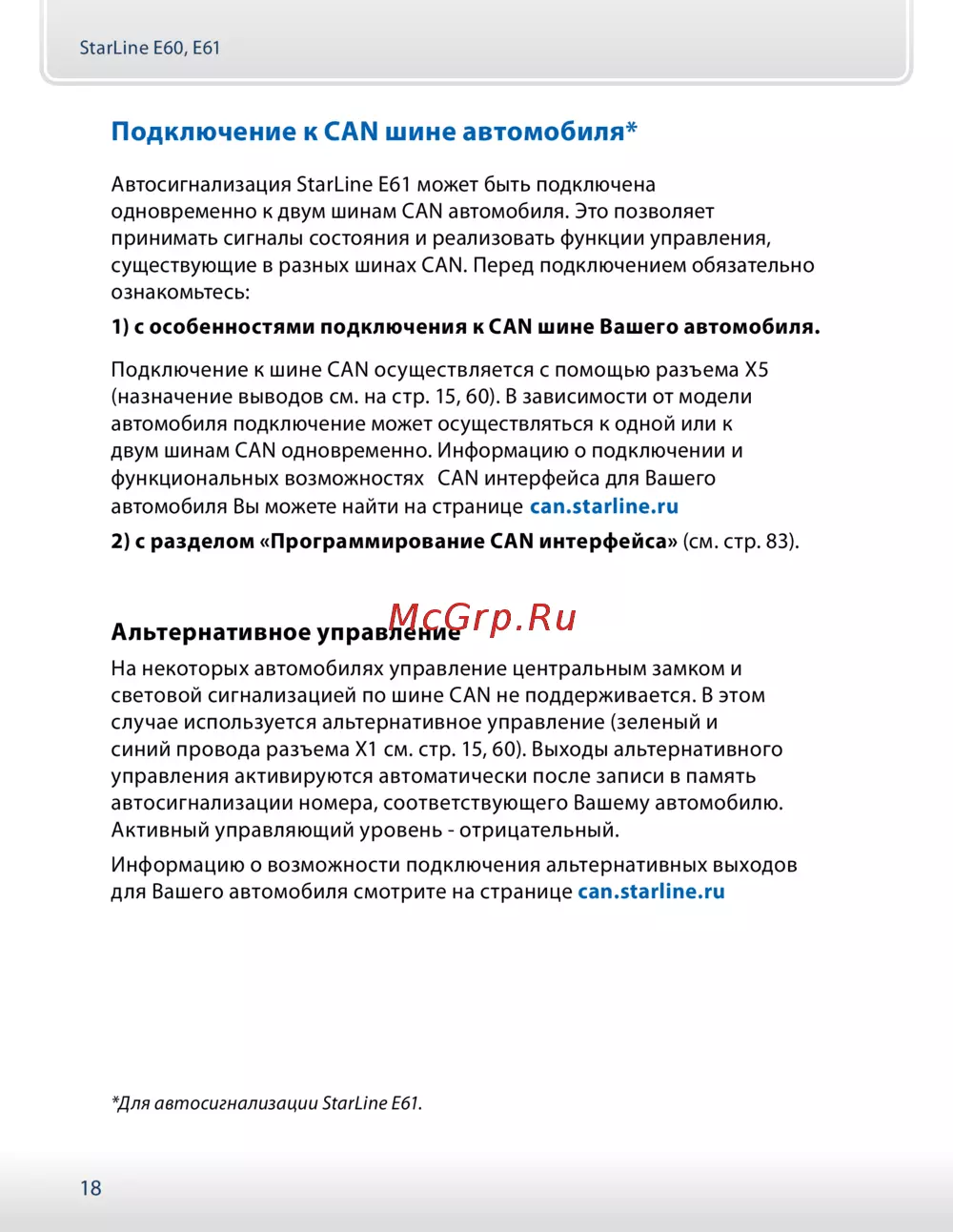 Starline E61 [18/126] Подключение к can шине автомобиля