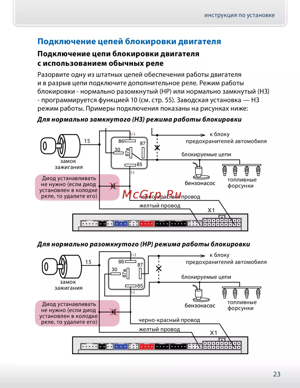 - Подключение цепи блокировки двигателя с использованием обычных реле p.23