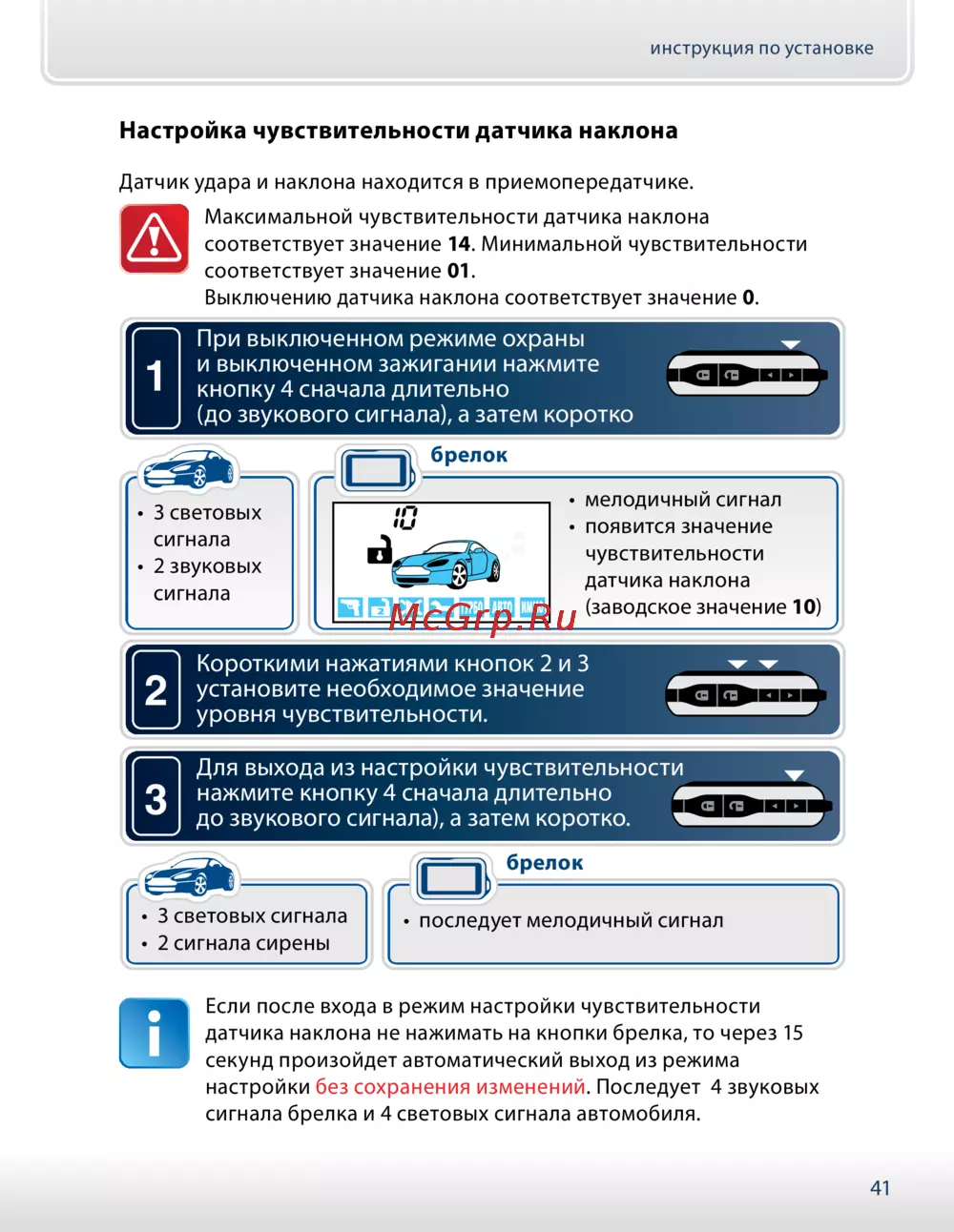 датчика наклона не нажимать на кнопки брелка, то через 15