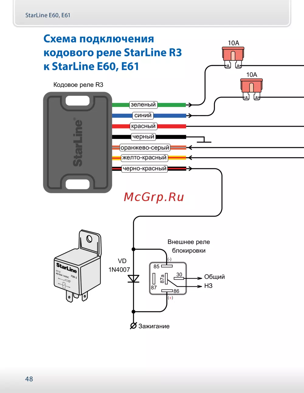 Starline E61 [48/126] Схема подключения кодового реле starline r3 к starline е60 е61