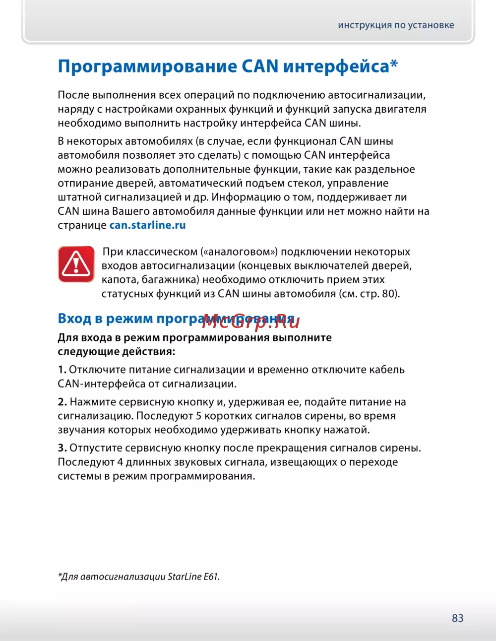 Starline E61 — инструкция по настройке CAN интерфейса для автосигнализации [83/126]