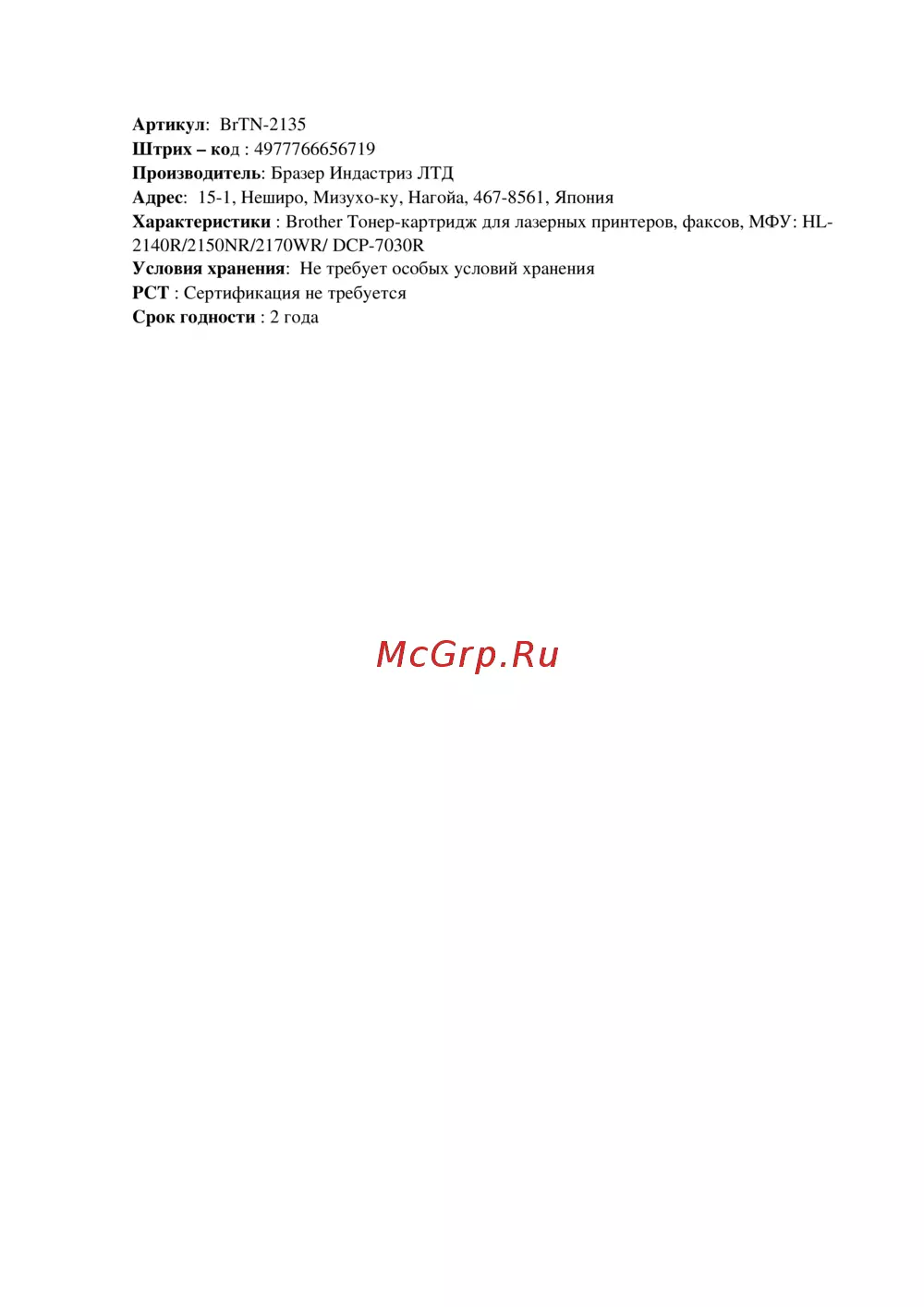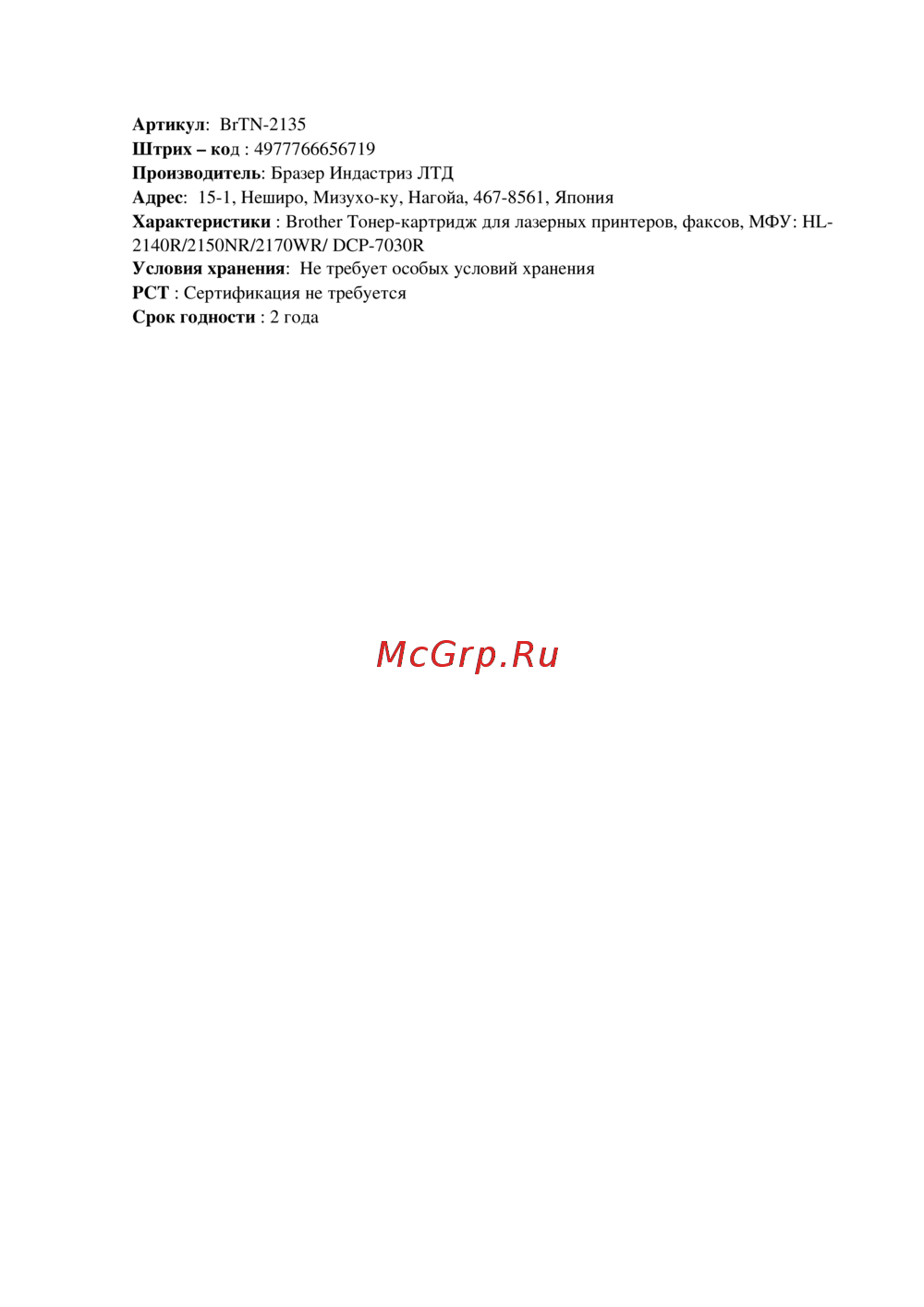 Brother TN-2135 Инструкция по эксплуатации онлайн