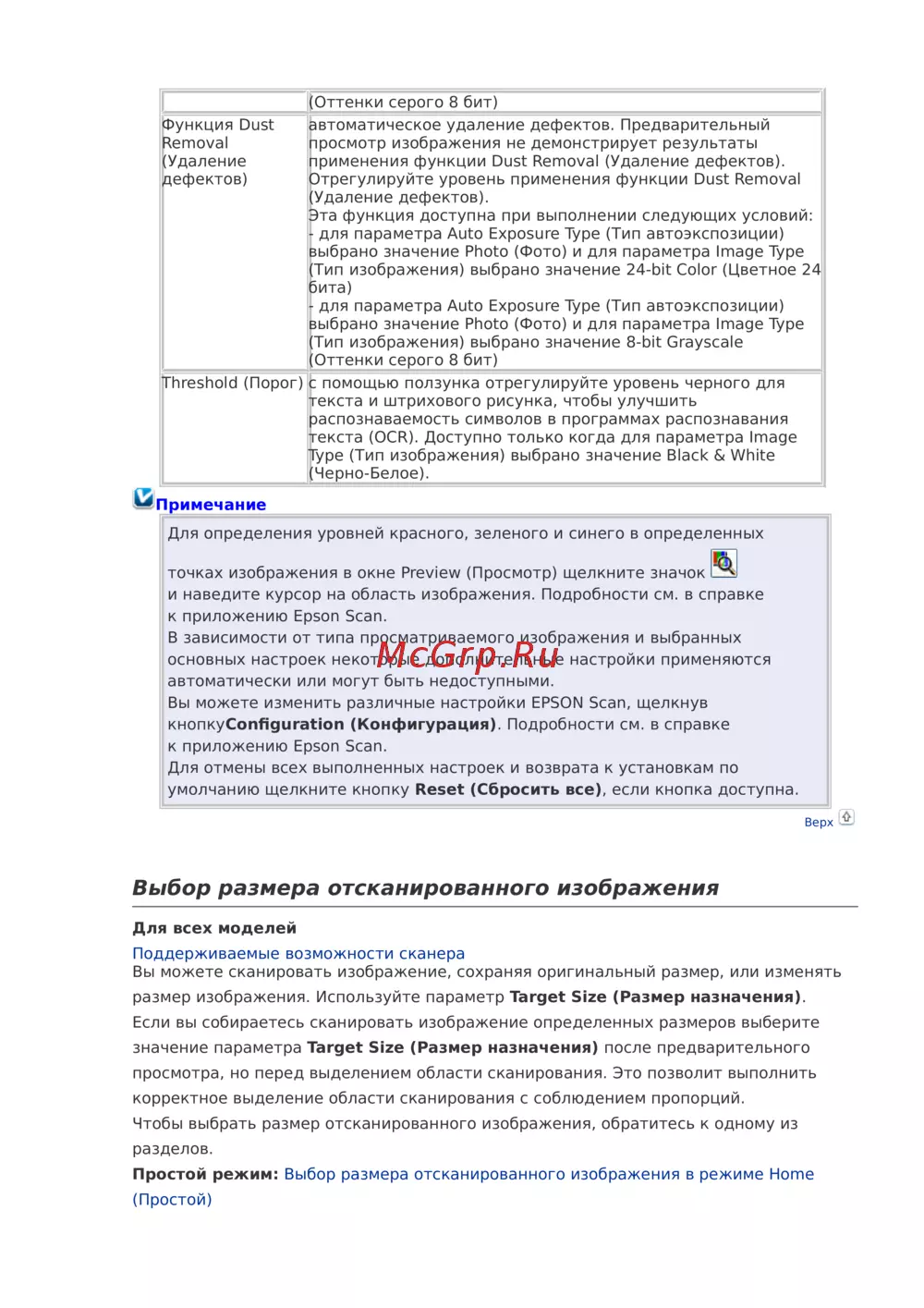 Узнайте, как использовать функцию удаления дефектов и выбрать размер отсканированного изображения. Настройте параметры для достижения наилучших результатов сканирования.
